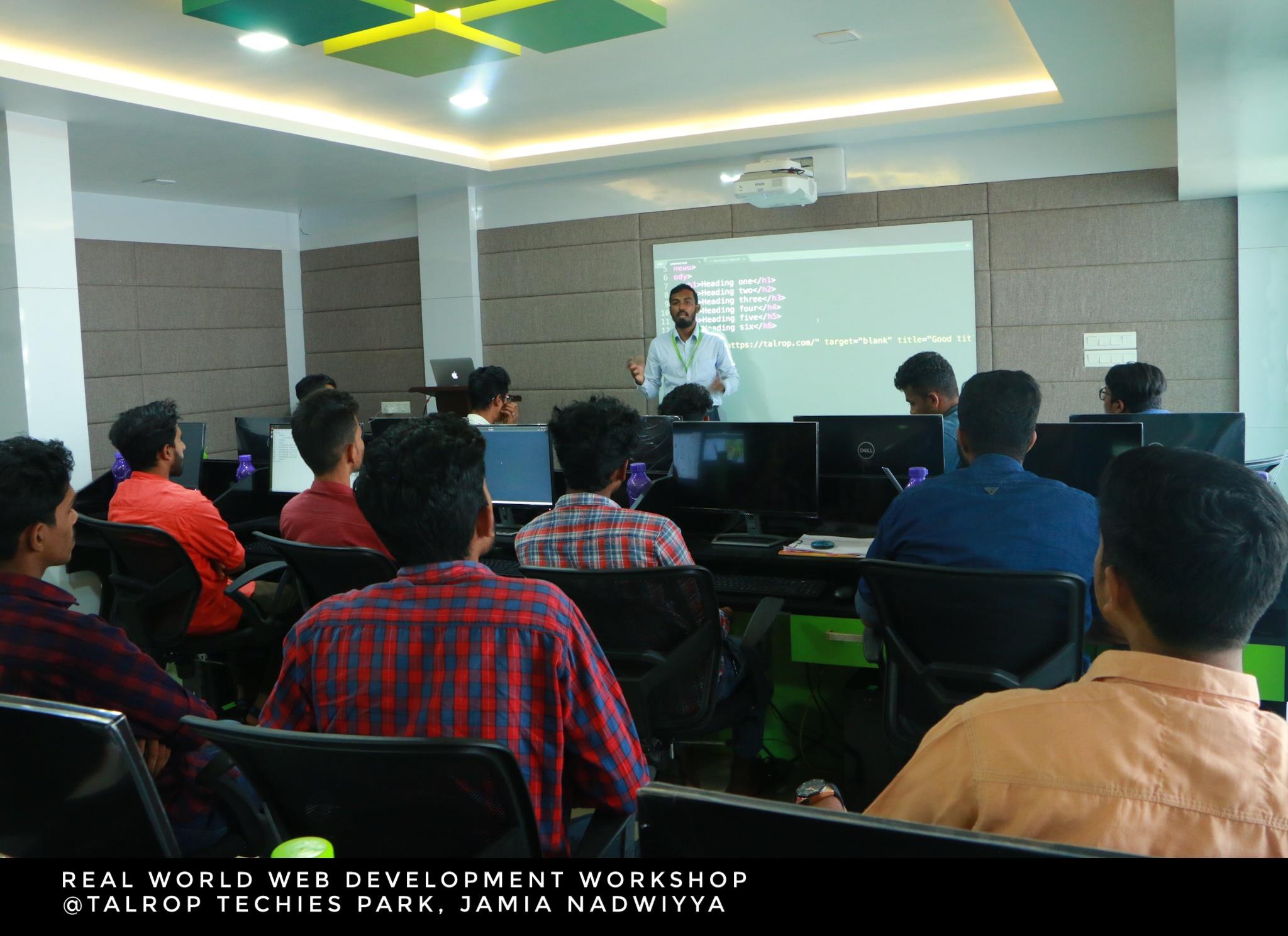 Talrop conducted workshops on different subjects with a primary goal to increase the participants understanding of technology and its development. Always we get energetic participants and we trust that workshops are always informative and beneficial. We conducted a workshop on Real world web development workshop at Talrop Techies Park, Jamia Nadwiyya, Malappuram on 19th January 2019. Real world web development workshop at Talrop Techies Park, Jamia Nadwiyya, Malappuram on 19th January 2019. Through these live workshops, students will get to know the scope of technology in the present work and how to use it. Through our Real world web development workshop we focus to inspire student about web development technology and provide classes about web development. The web development process includes web design, web content development, client-side/server-side scripting, and network security configuration, etc. Our workshops are always interactive where a student can clarify any doubts, gain any further knowledge which we glad to provide. We thank the college management and the Teachers for their cooperation and arrangement for the workshop. We are happy to received reviews as it was a wonderful event for the students participated in the workshop also it was indeed an amazing experience.
